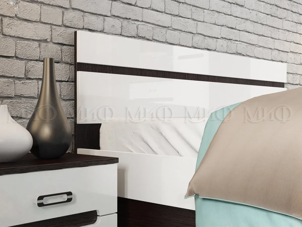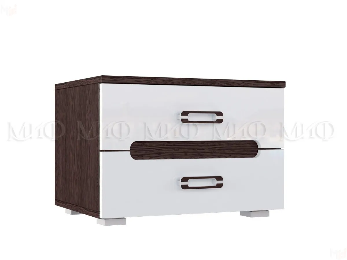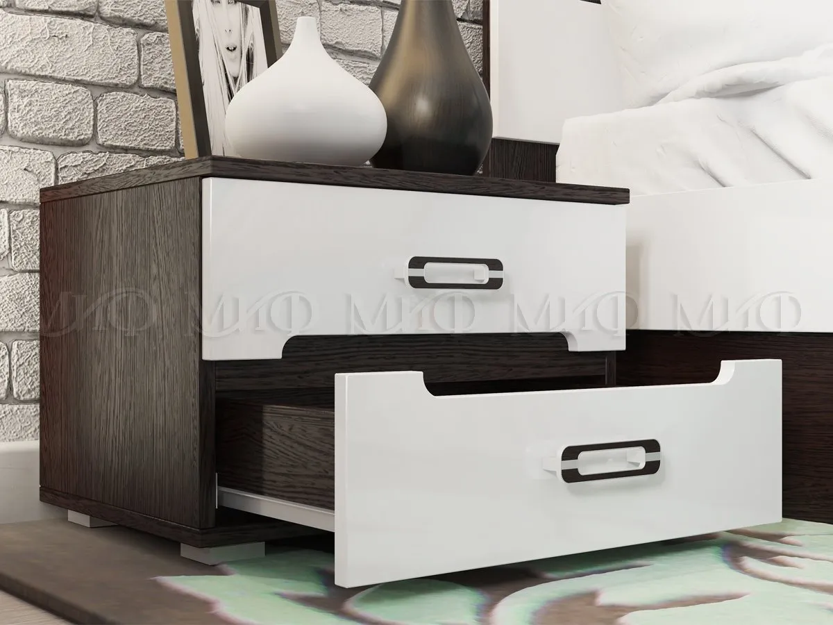 Тумба прикроватная из спального гарнитура Ким. Каркас ЛДСП венге, фасады МДФ белый глянец.