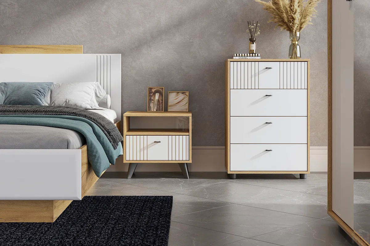 Тумба прикроватная Милан Дуб Золотой/Белый Матовый
