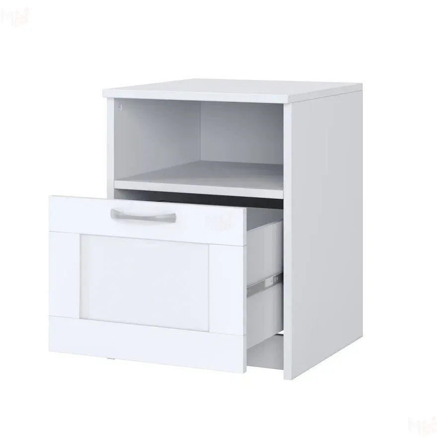 Тумба выполнена из КДСП толщиной 16 мм белого цвета. Фасады сборные.