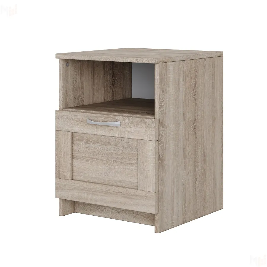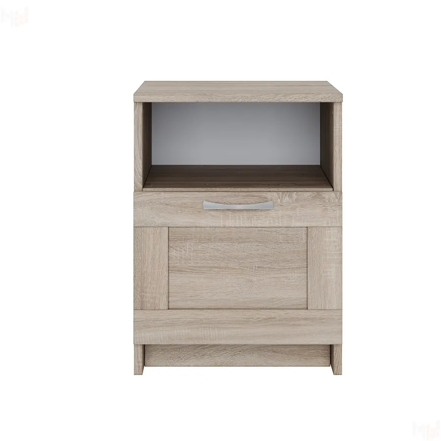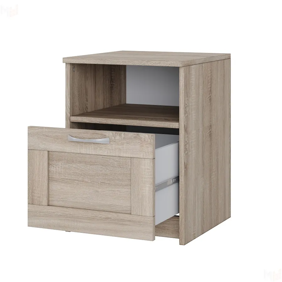 Тумба выполнена из КДСП толщиной 16 мм цвета дуб сонома. Фасады сборные.