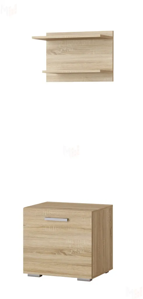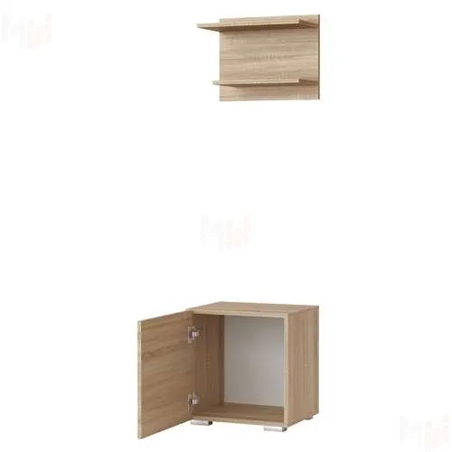 Тумба 1-створчатая с навесной полкой Дуб Cонома. Полка крепится к стене через навесные элементы.
