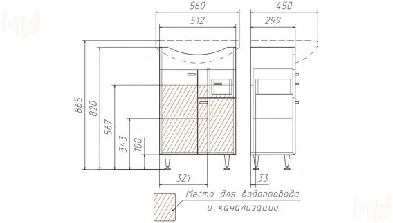ширина 512 мм, глубина 299 мм, высота 820 мм