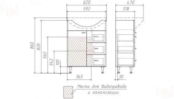 ширина 592 мм, глубина 318 мм, высота 820 мм