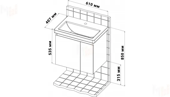 Тумба с раковиной подвесная Briz Бьелла 60 см