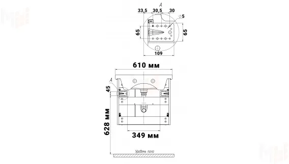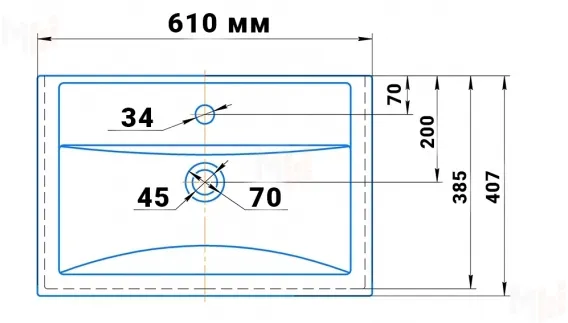 ширина 570 мм, глубина 400 мм, высота 530 мм