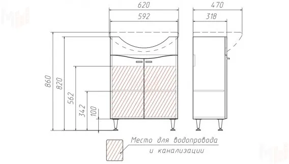 ширина 592 мм, глубина 318 мм, высота 820 мм
