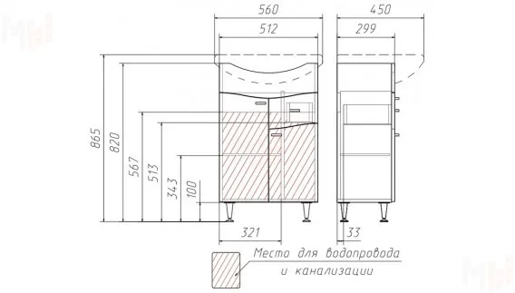 ширина 512 мм, глубина 299 мм, высота 820 мм