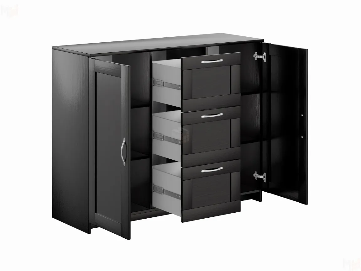 Тумба Сириус 2 двери 3 ящика выполнена из КДСП толщиной 16 мм цвета венге.