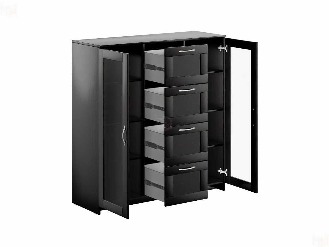 Тумба Сириус 2 двери и 4 ящика выполнена из КДСП толщиной 16 мм цвета венге.