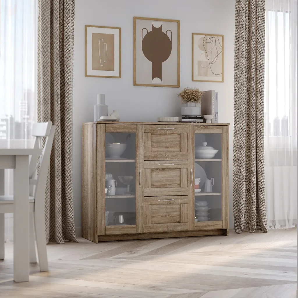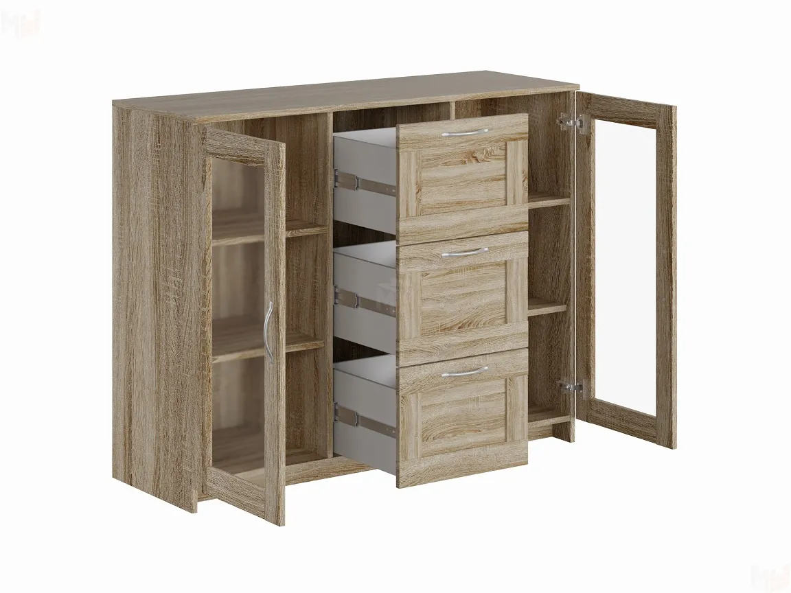 Тумба Сириус 2 двери 3 ящика выполнена из КДСП толщиной 16 мм цвета дуб сонома.