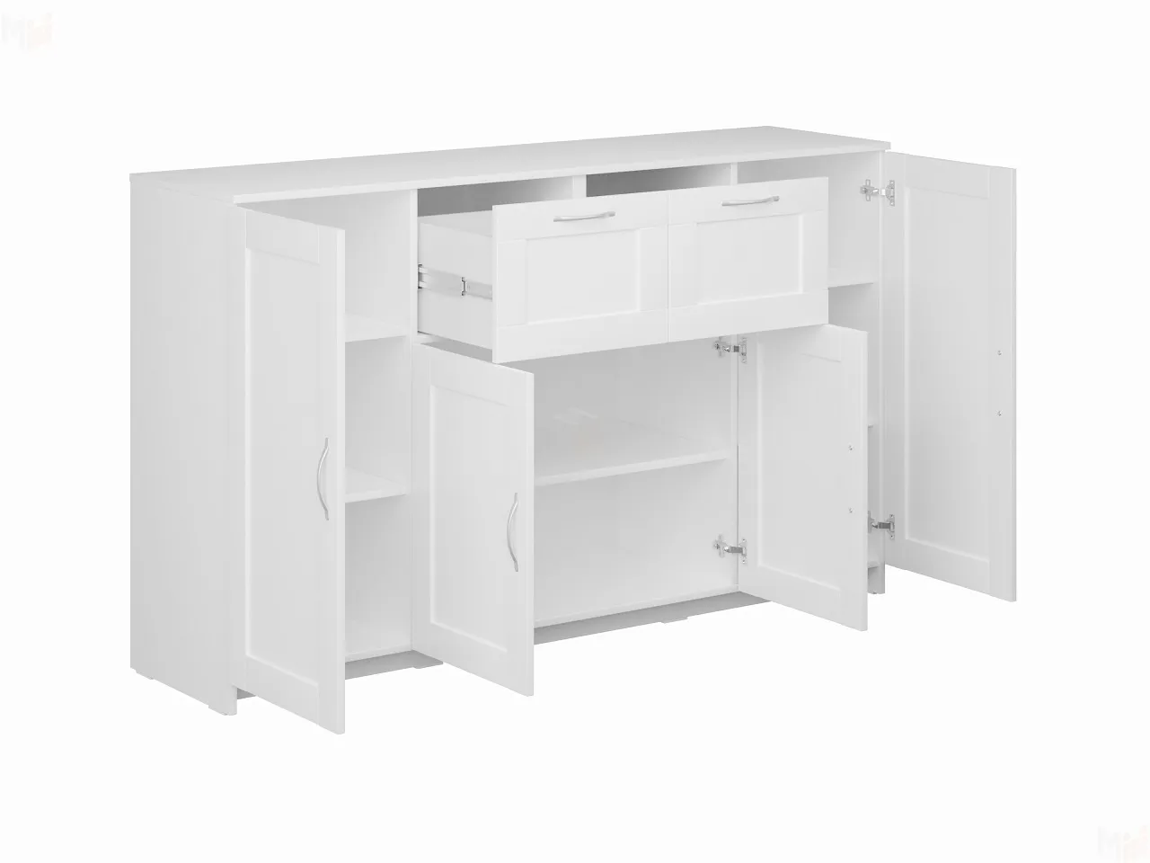 Тумба Сириус 4 двери 2 ящика выполнена из КДСП толщиной 16 мм белого цвета.