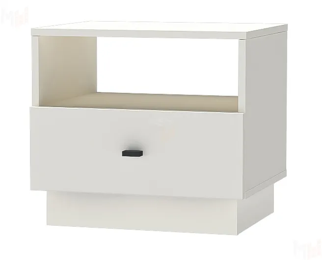Небольшая тумба оснащена выдвижным ящиком на шариковых направляющих полного выдвижения и открытым отделением. -
