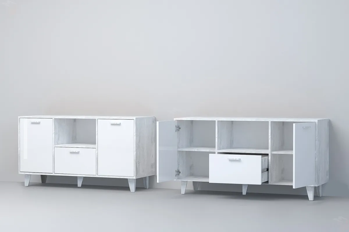 Материал - ламинированная ДСП Бетон светлый/Белый глянец.