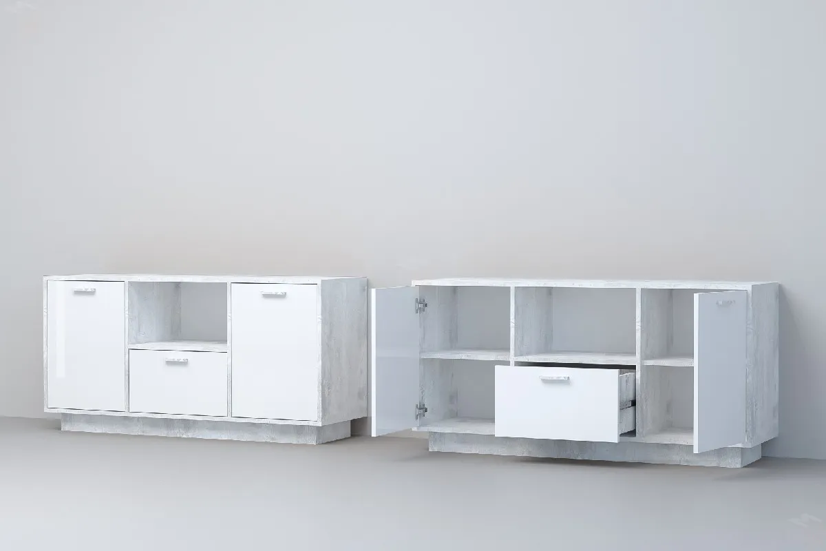 Материал - ламинированная ДСП Бетон светлый/Белый глянец.