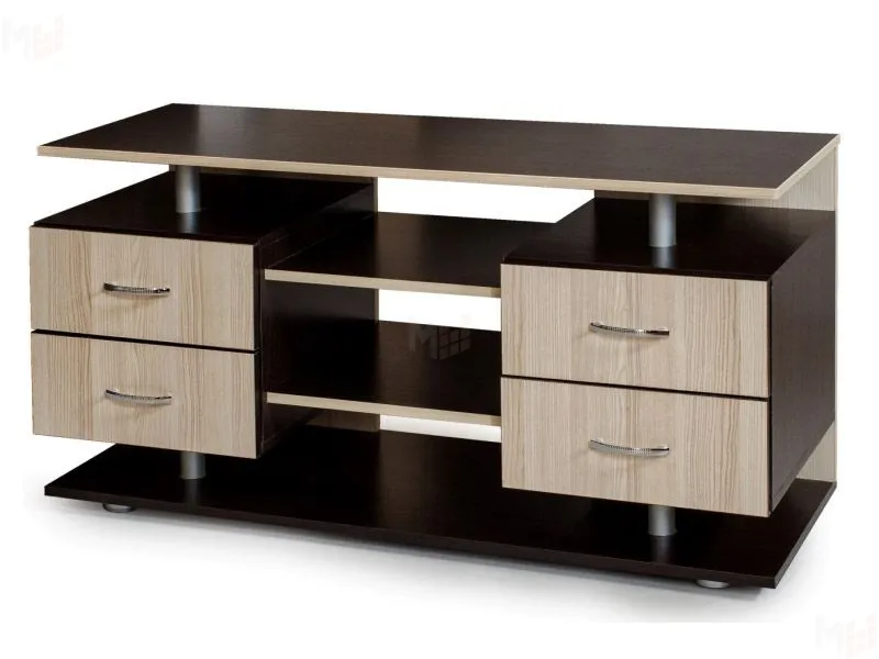 Популярная тумба под телевизор стиля модерн, простая и элегантная, для любителей лаконичной стилистики в интерьере. Целых четыре вместительных ящика на опорах полного выдвижения. Большое количества поверхностей для размещения техники и необходимых мелочей.