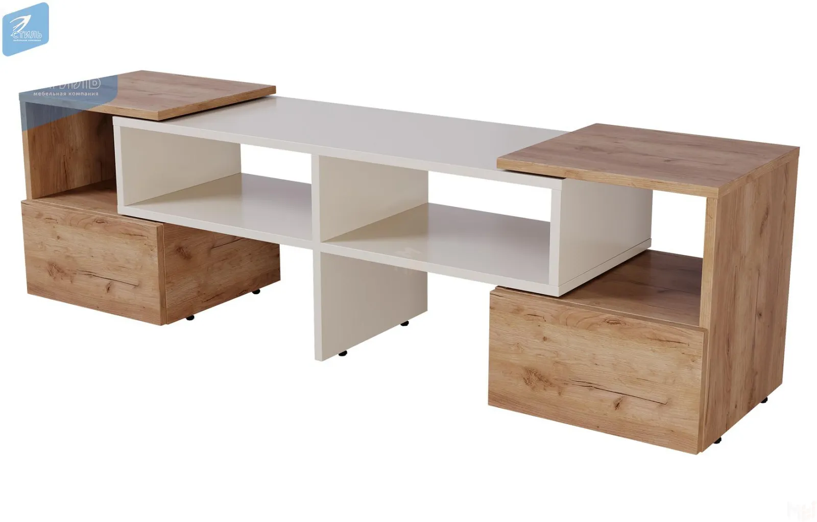Тумба выполнена из ЛДСП в сочетании цветов Дуб крафт золотой и Бежевый.