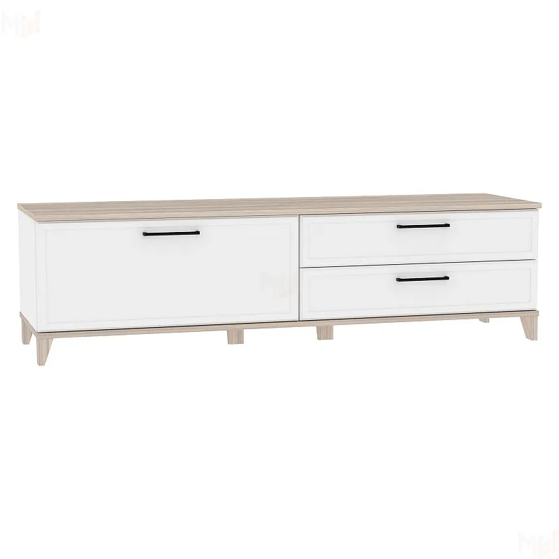 Aurelio 3 Тумба ТВ рассчитана на телевизор диагональю до 60 дюймов. Четкая геометрия линий привлекает элегантностью: фасады тумбы в тонком профиле МДФ, верх и низ выполнены в древесном декоре, опоры из МДФ со скосом. Всё это придаёт ТВ Тумбе легкость и лаконичность.