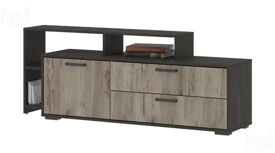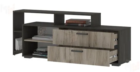 Тумба ТВ Эдинбург станет эффектным и функциональным предметом обстановки гостиной или спальни: помимо видео-панели и аудиотехники поверх, на его открытых полках можно разместить книги, фотографии или декоративные предметы, добавив интерьеру индивидуальный акцент. Среди закрытых секций есть два выдвижных ящика и закрытые ниши за створкой.