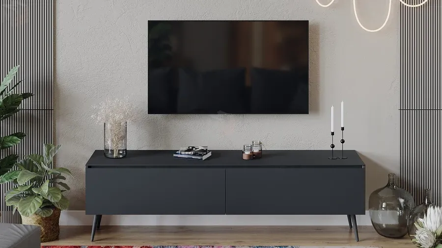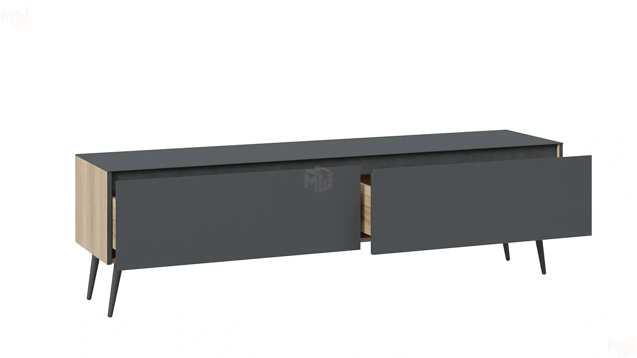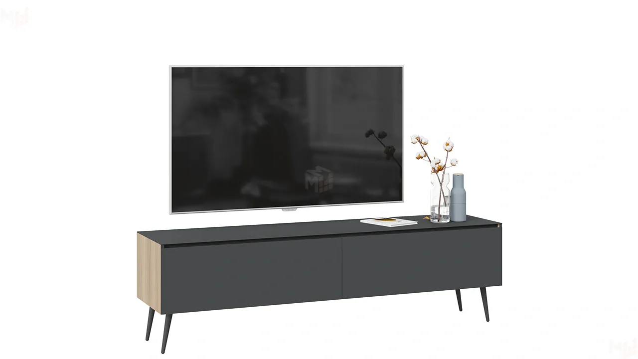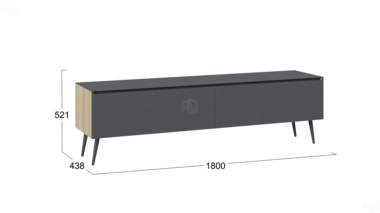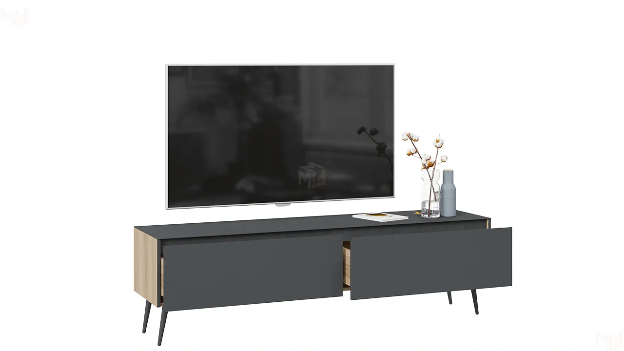 Тумба ТВ Глосс с опорами - СМ-319.03.011 Яблоня Беллуно, Cтекло Графит матовый