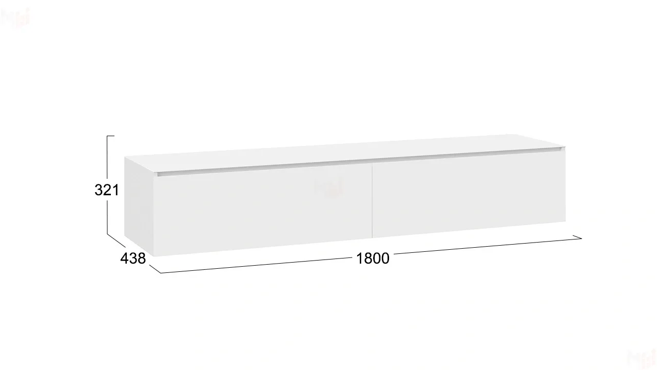 ширина 1800 мм, глубина 438 мм, высота 321 мм