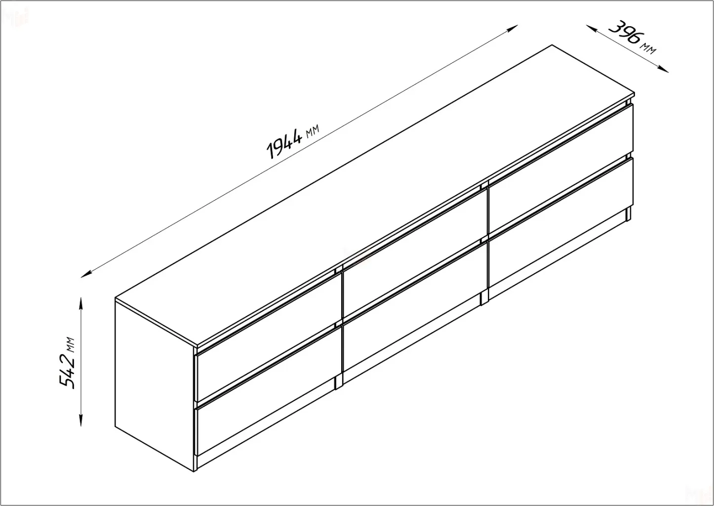 ширина 1944 мм, глубина 396 мм, высота 542 мм