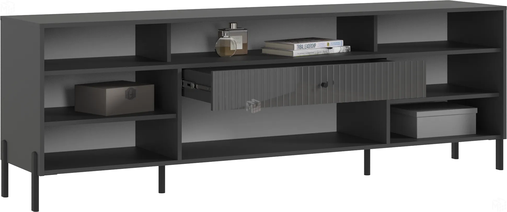 Корпус тумбы выполнен из ЛДСП Графит 16 мм, фасады МДФ Графит софт или Графит глянец.