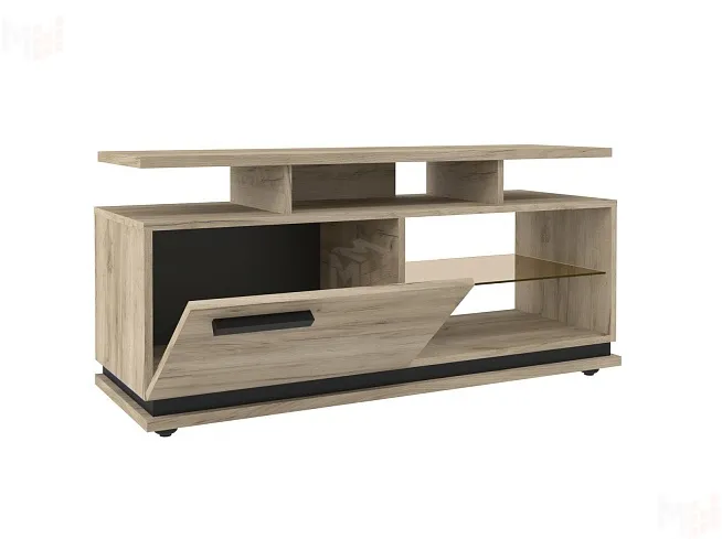 Тумба OSLO 333 в стиле Лофт - компактный вариант тумбы под телевизор диагональю до 44'' для маленьких гостиных. Она не занимает много места и выглядит аккуратно. Откидной фасад из ЛДСП и надстройка помогут организовать пространство, добавляя компактной 333 Тумбе ТВ функционал. Тумба в декоре Дуб Серый будет стильно смотреться в любом цветовом решении вашей квартиры. Регулируемые опоры позволят компенсировать незначительные неровности пола.