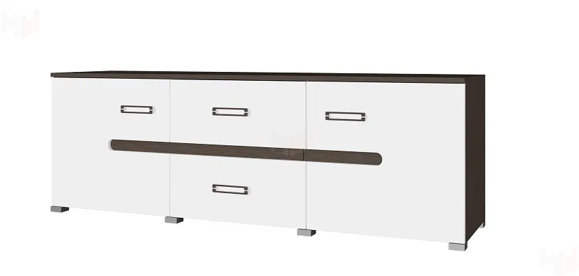 ТВ тумба с выдвижными ящиками. Каркас ЛДСП венге, фасады МДФ белый глянец.