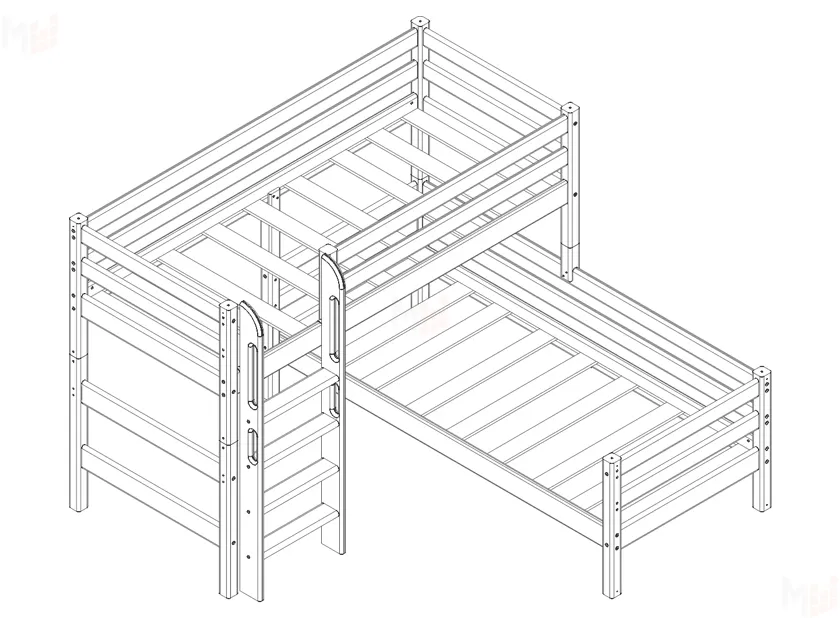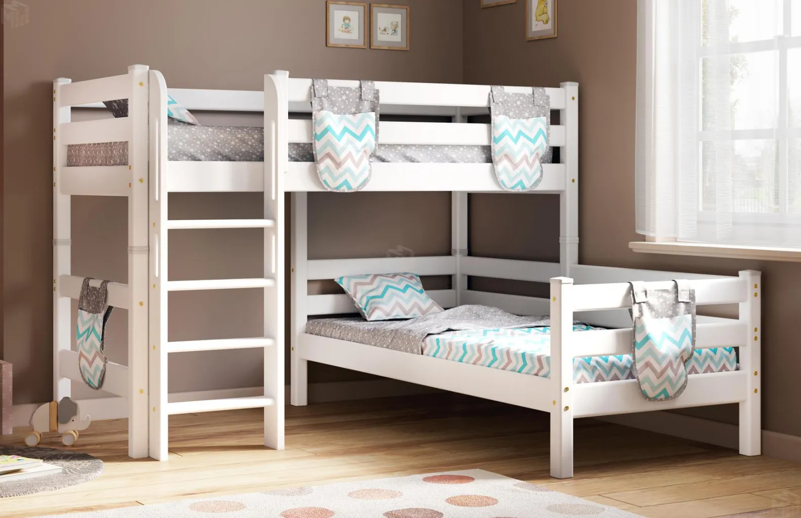 Угловая кровать «Соня» с прямой лестницей — один из примеров идеального сочетания практичности, оригинальности и долговечности. Цветовое исполнение подходит сразу для нескольких стилей, а габариты — для комнат разной площади.
