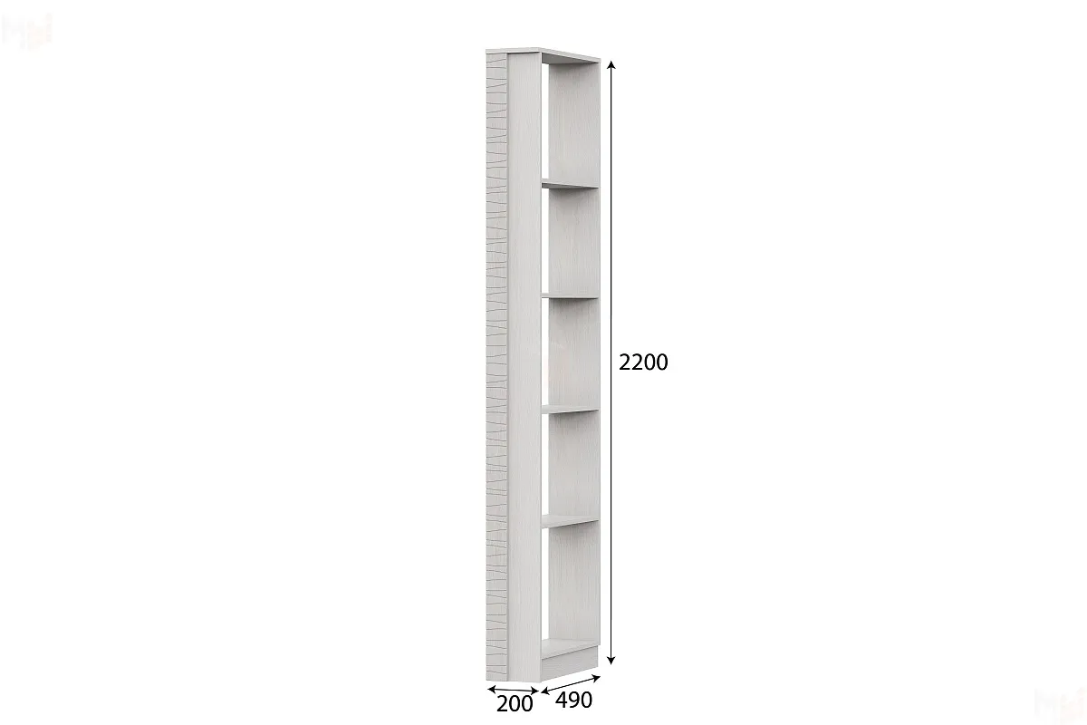 Представляет собой стеллаж без задней стенки с четырьмя открытыми полками. Предназначен для использования как торцевое окончание к модулям глубиной 490 мм или в качестве самостоятельного изделия.