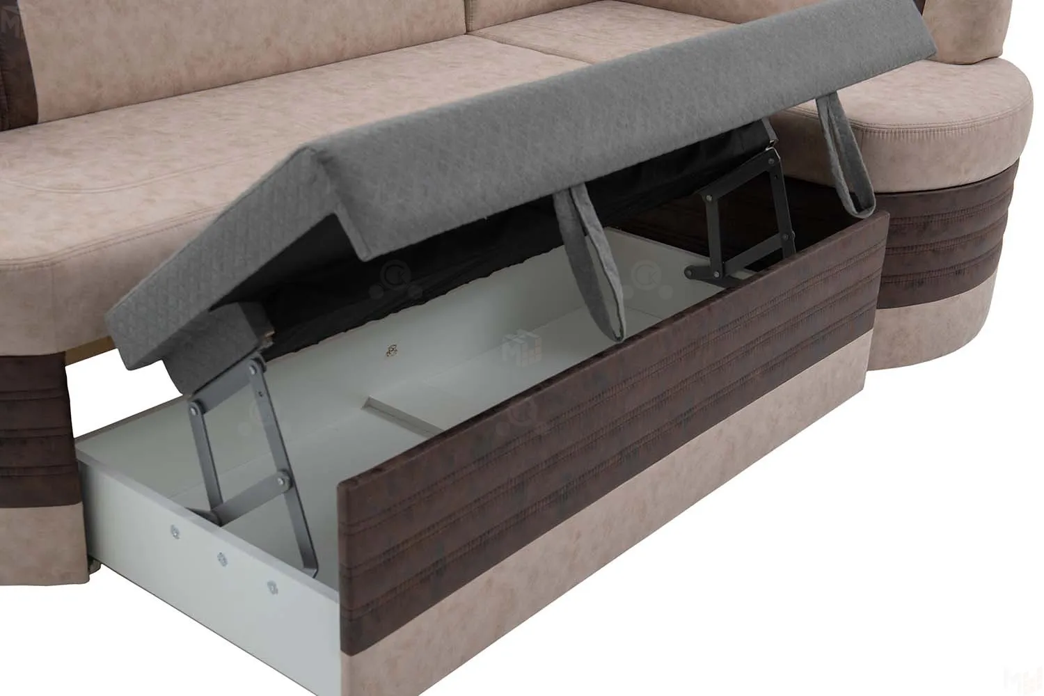 Угловой диван "Чикаго" отличается солидным и элегантным дизайном. Модель с рельефной прошивкой по сиденью, вставки контрастного цвета сразу привлекают к себе внимание. Высокая спинка и глубокой посадка, обеспечат комфорт и релакс. Благодаря наличию механизма трансформации «дельфин» можно получить глубокое спальное место в нужный размер длины. В угловой части находится подъемная оттоманка с вместительным ящиком для хранения. Наполнитель сиденья- качественный пенополиуретан, который выдерживает большие нагрузки и дает удобство посадки к столу.