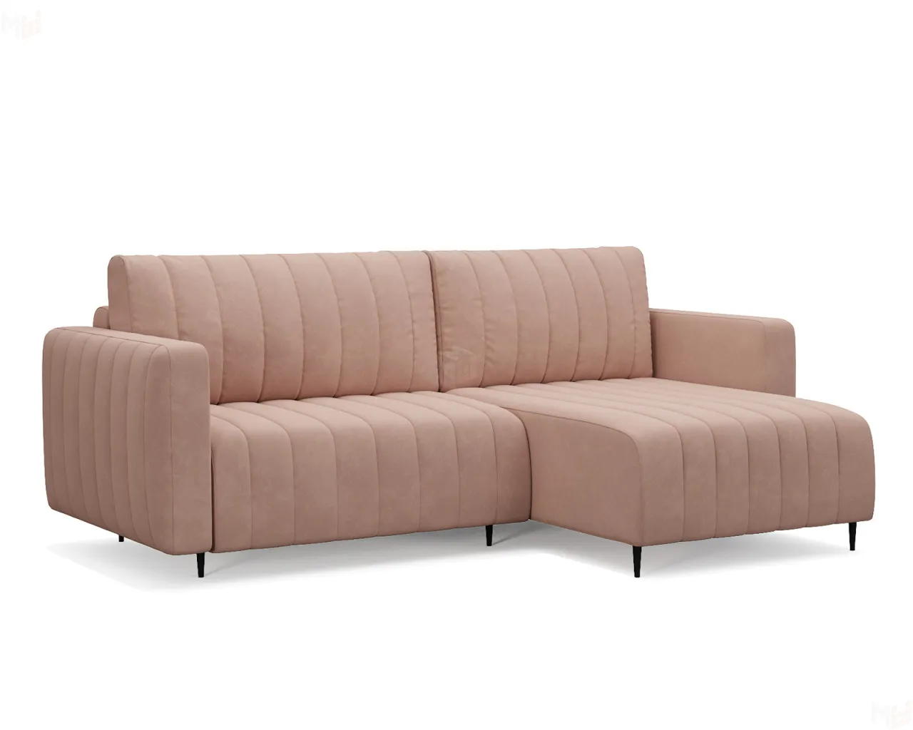 У модели встроенный бельевой ящик. Достать вещи быстро помогает механизм трансформации «пантограф». Благодаря выдвигаемой вперед передней секции, угловой диван можно поставить вплотную к стене, не беспокоясь о повреждении напольного покрытия при трансформировании.