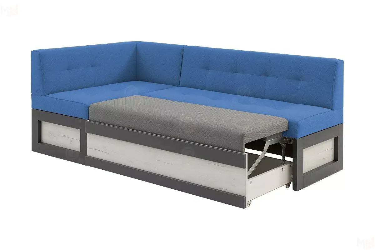 Достоинствами данной модели являются глубокое посадочное место, которое обеспечивает удобную посадку к столу и позволяет использовать диван для отдыха даже не раскладывая его. Отсутствие подлокотников позволит не загромождать пространство на кухне. Нижняя часть дивана выполняется в виде прямоугольной рамки в цвете Антрацит. Внутреннюю вставку можно выбрать из множества цветов ламинированной плиты.