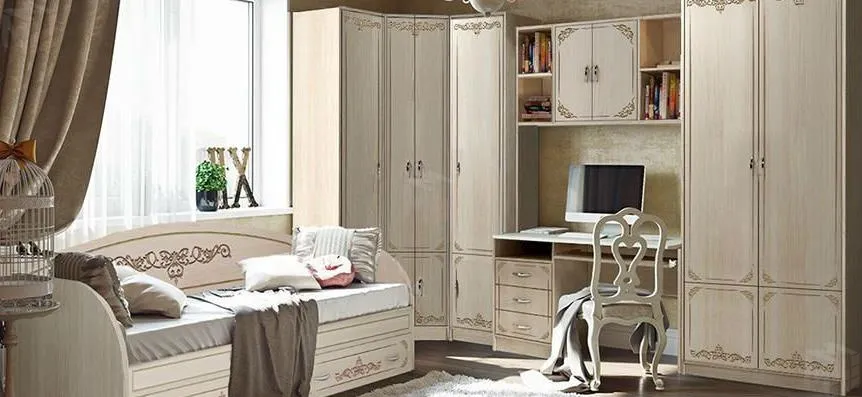 Мебель производится из австрийского ЛДСП компании Эггер (толщина 16 мм, класс безопасности Е1). Используются кромка ПВХ (2 мм), металлические крепления и европейская фурнитура.