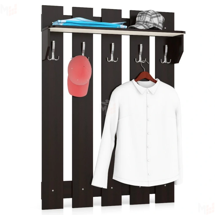 Навесная панель вешалка на 5 крючков, шириной 100 см. Материал ЛДСП. Цветовое исполнение на выбор: ясень шимо темный, ясень шимо светлый или венге.