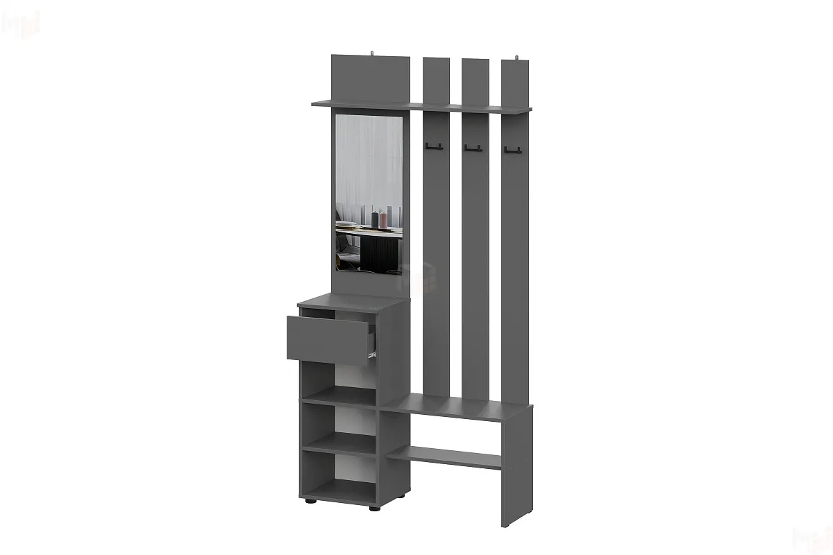 Сборка корпуса универсальная (собирается как на левую, так и на правую сторону). Обязательно крепление зеркала и вешалки к стене при помощи входящих в комплект плоских навесов. Максимальная нагрузка на ящики - 5кг, на крышку тумбы - 20кг, на верхнюю полку под вешалкой - 10кг, на нижнюю полку под вешалкой - 5кг, на полку вешалки - 3кг.
