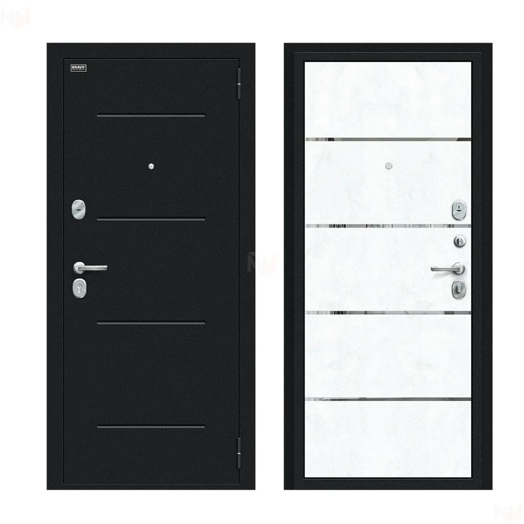 Входная металлическая дверь Лайн Букле черное/Snow Art