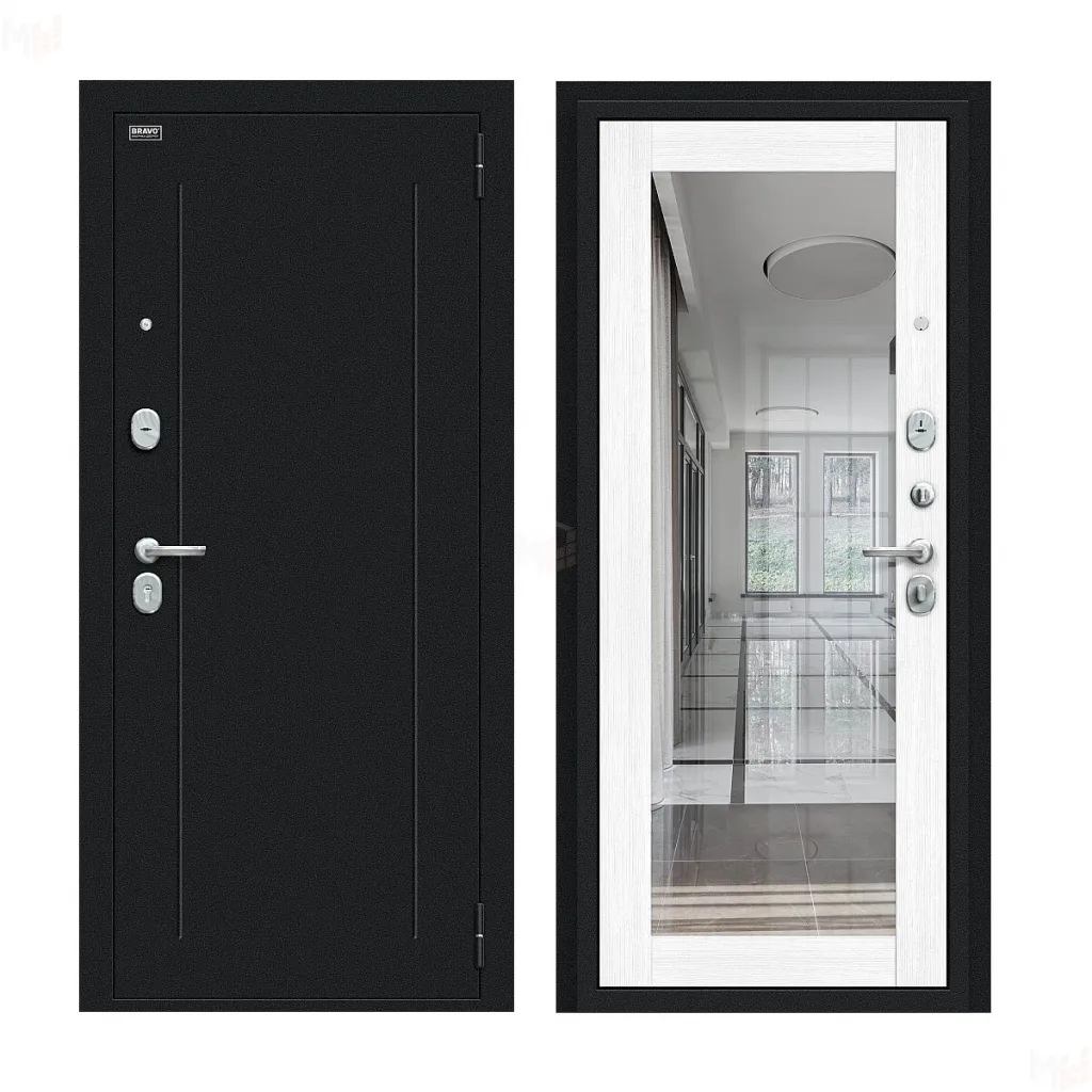 Входная металлическая дверь Флэш с зеркалом Snow Melinga