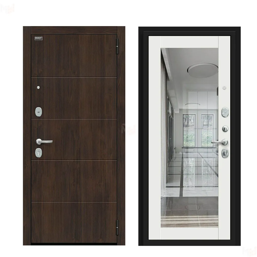 Семь усиливающих уголков и защитный карман для замков. Дополнительную стойкость ко взлому обеспечивают два противосъемных штыря.