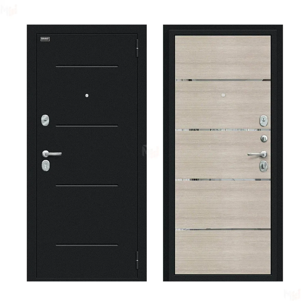 Входная металлическая дверь Лайн Букле черное/Cappuccino Veralinga
