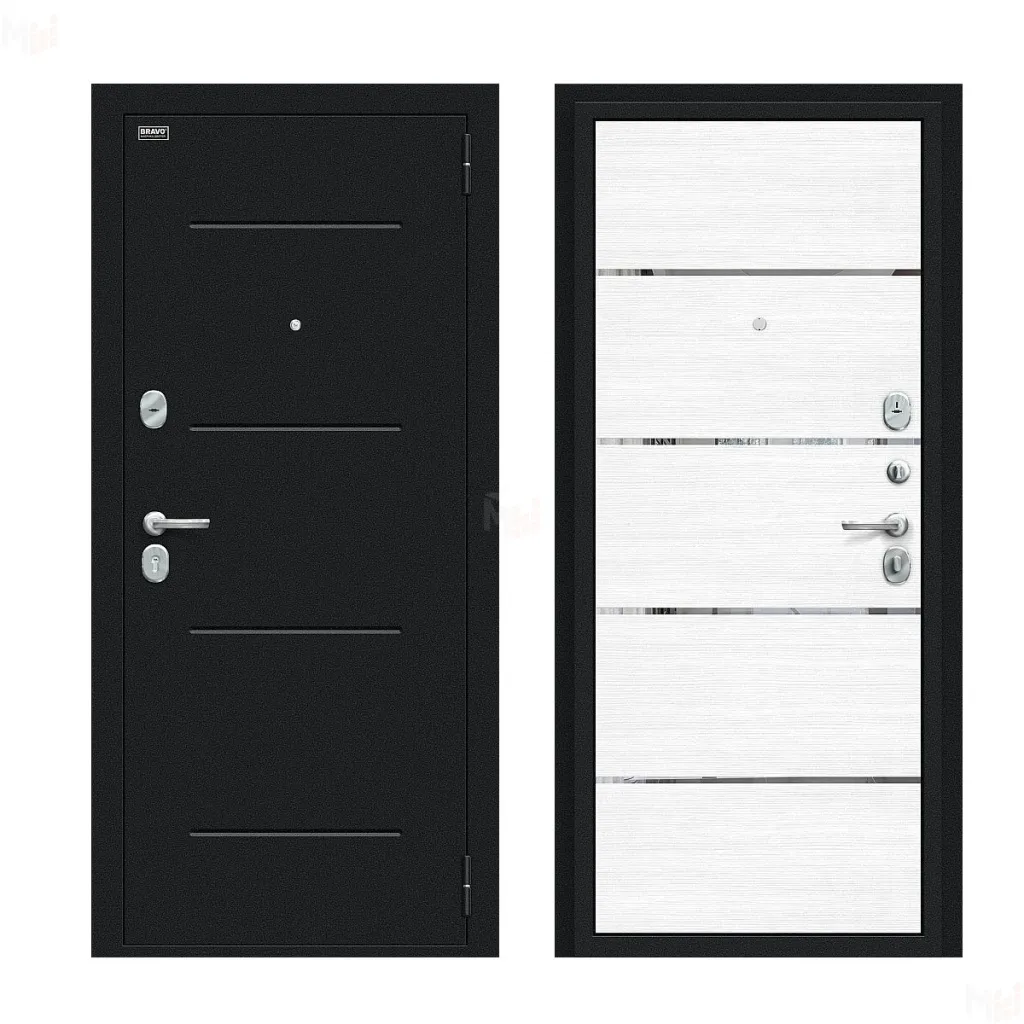 Входная металлическая дверь Лайн Букле черное/Snow Melinga