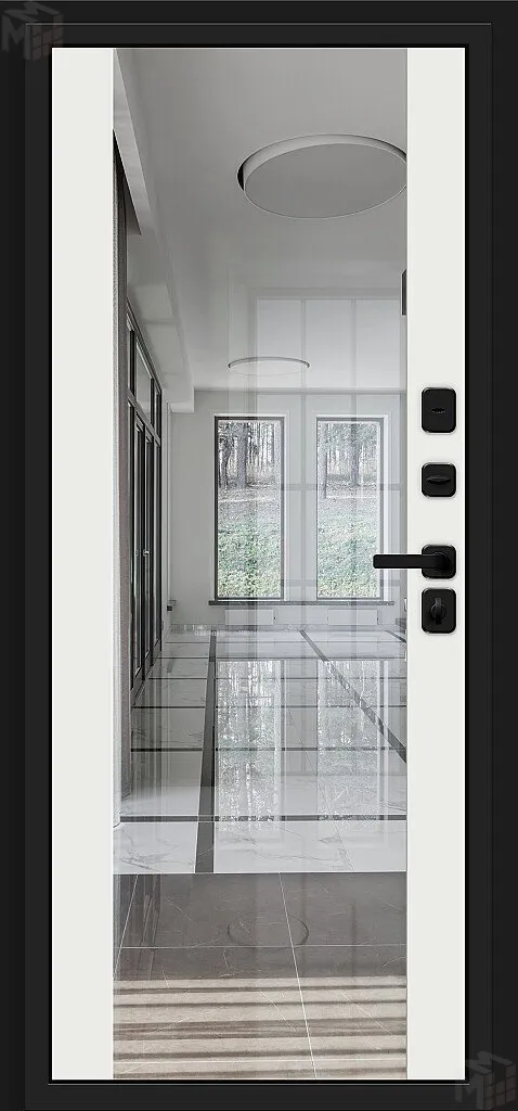 Внутри полотна установлена конструкционная теплоизоляционная панель SIP (Structural Insulated Panel), которая не только обеспечивает необходимую тепло- и шумоизоляцию, но и придает дополнительную жесткость и прочность дверному блоку.