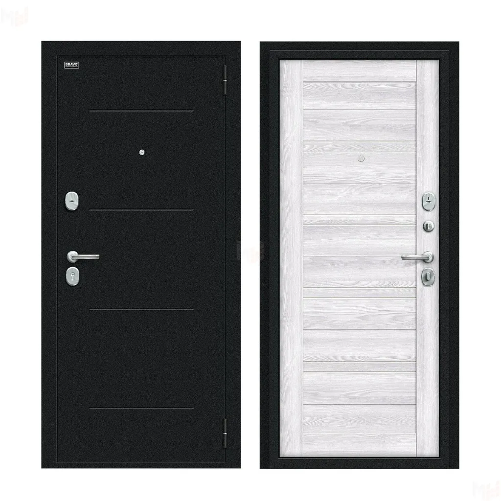 Входная металлическая дверь Сити Kale Букле черное/Riviera Ice