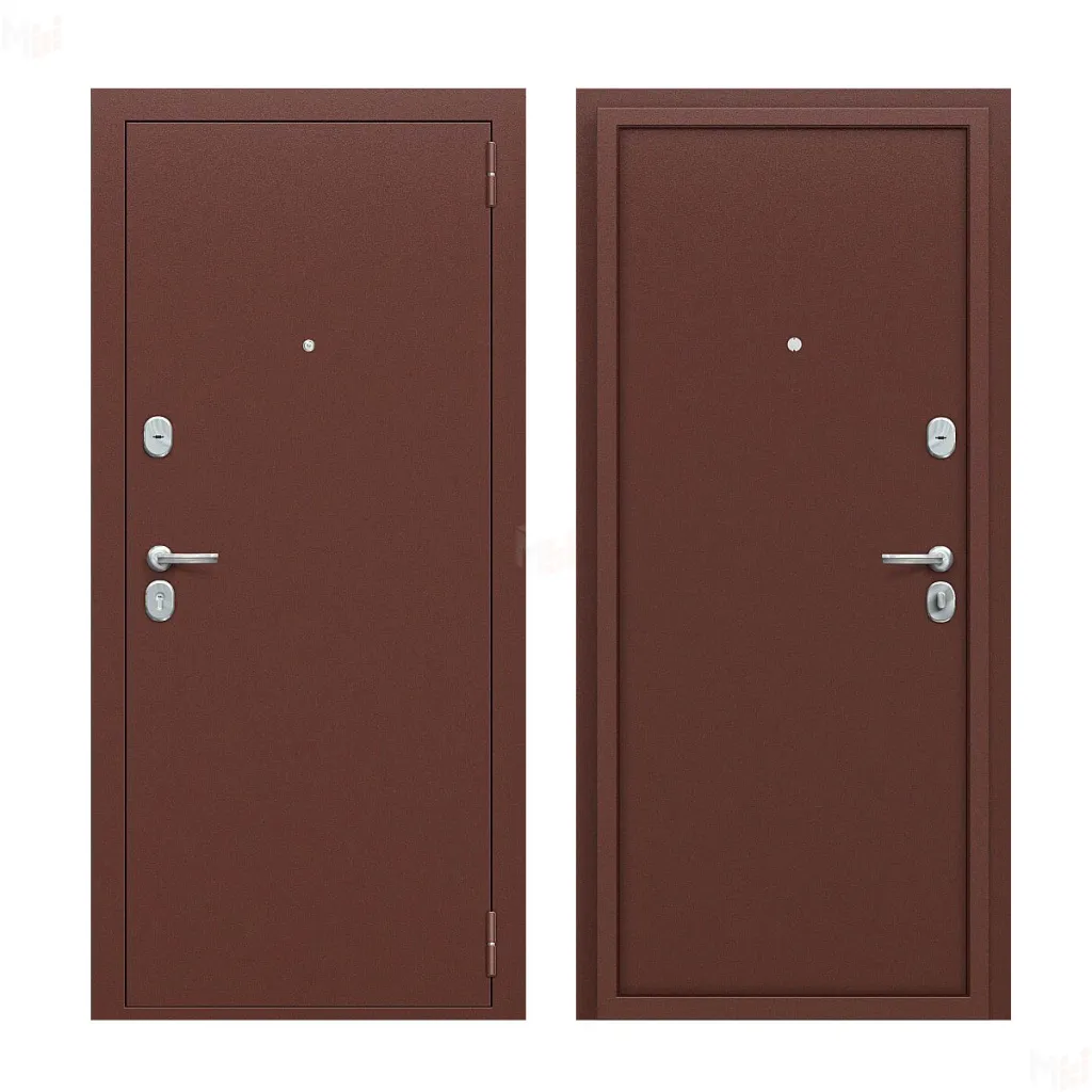 Входная дверь класса Комфорт с наружным открыванием. Изготовлена из легированной холоднокатаной стали.