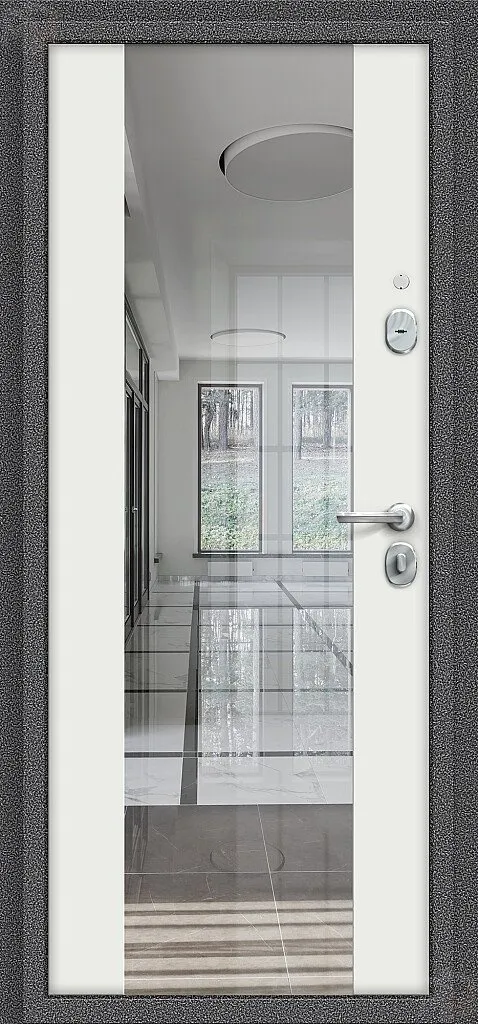 Отделка внутри: Панель МДФ с отделкой Эмалитом, толщина 8 мм, цвет белый, с зеркалом.