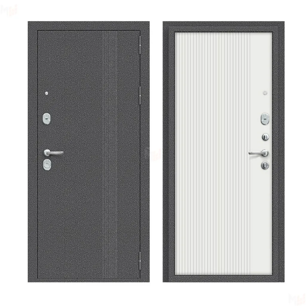 Входная металлическая дверь Тайга-9 Вертикаль Антик Серебряный/Белый