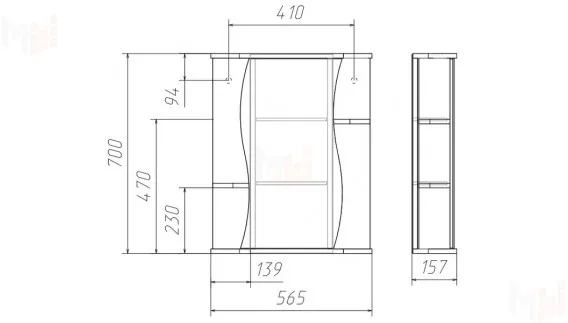 ширина 550 мм, глубина 157 мм, высота 700 мм