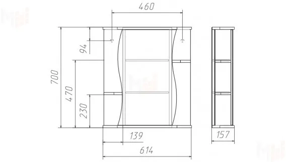 ширина 600 мм, глубина 157 мм, высота 700 мм